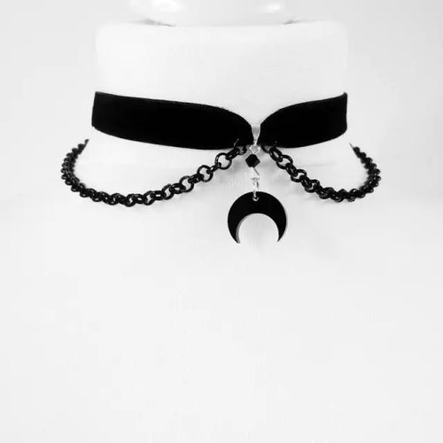 Make a bold statement with the Black Crescent Moon Choker Necklace. This gorgeous piece of jewelry is perfect for adding a touch of Gothic-inspired style to your wardrobe. The black velvet material provides an eye-catching contrast in this statement necklace, and the stunning crescent moon design creates a subtle yet powerful effect. Whether you’re looking to accessorize an evening look or give someone a special gift, this necklace is sure to turn heads. Sophisticated and fashionable, it’s the perfect addition to any outfit. Give your outfit an extra element of edge with the Black Crescent Moon Choker Necklace—you won’t be disappointed!
